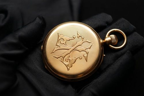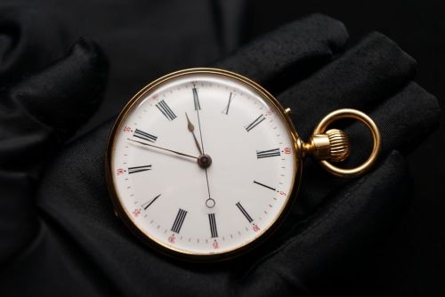 Made in Switzerland circa 1890, 50mm, 18K gold open-face case. Double train movement with jumping seconds and stop-seconds mechanism, which allows timepieces to be set precisely to the second.